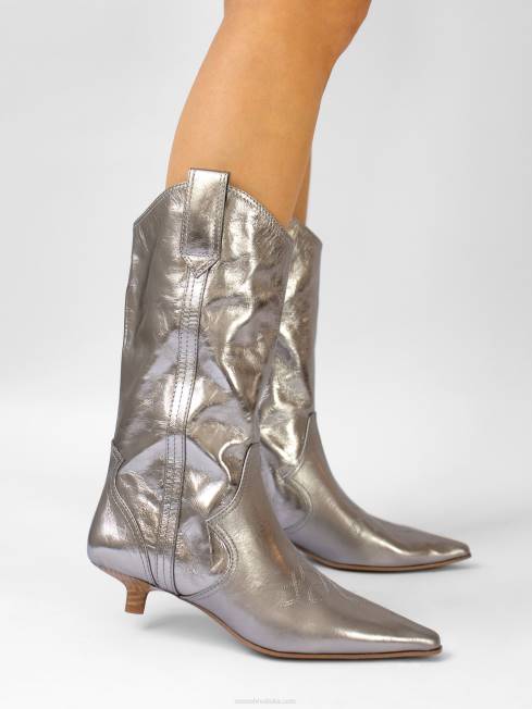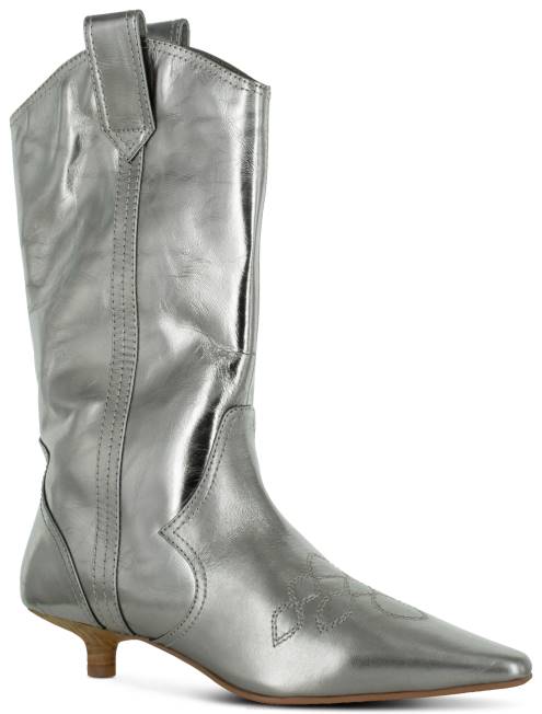 kaubojske čizme S čeličnim Kromiranim Naplatkom Srednjeg Rasta, S Ukrasnim Vezom, Bočnim Jezičcima Za Izvlačenje I Malom Petom.