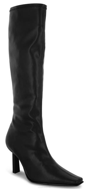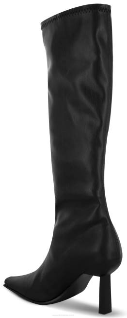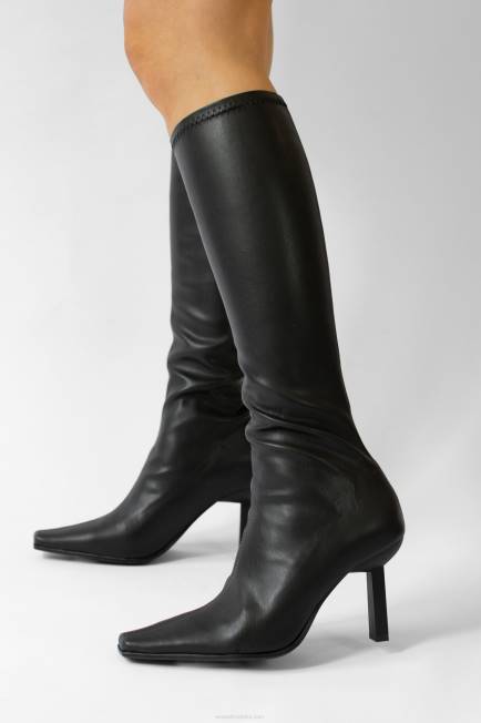 čizme Do Koljena Od Umjetne Kože Ebanovine, Sa Stiletto Petom, Izgledom Poput čarape I Vrhom U Obliku Badema.