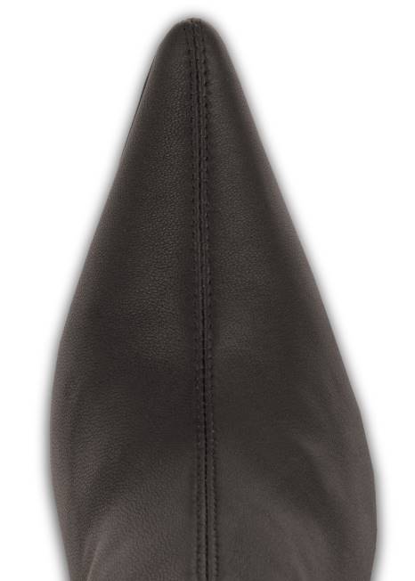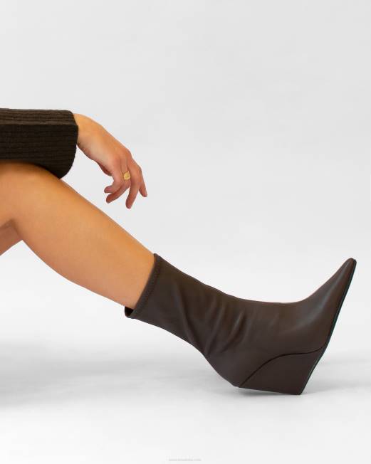 čizme Od Rastezljive Umjetne Kože U Boji Kakaa, S Klinastom Potpeticom, šiljatim Vrhom I Gumenim Potplatom.
