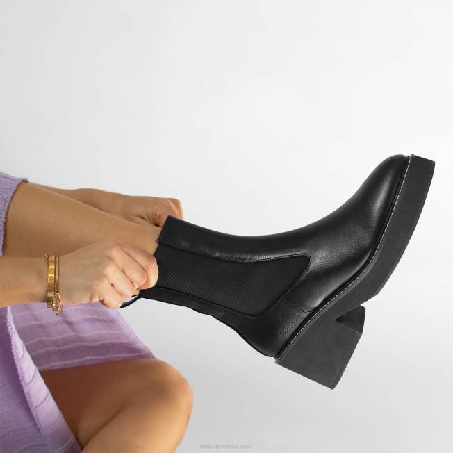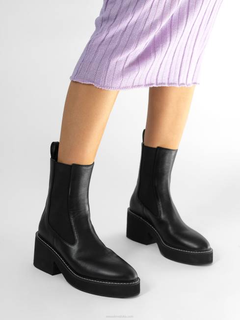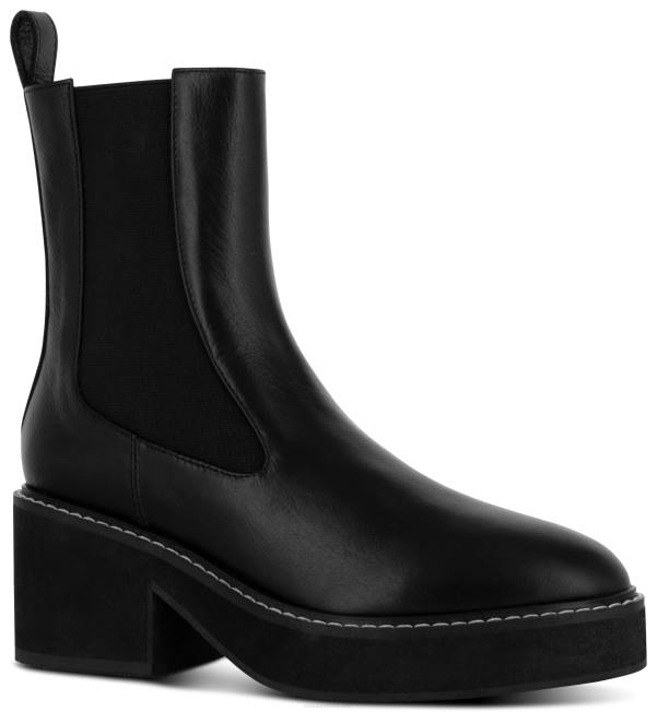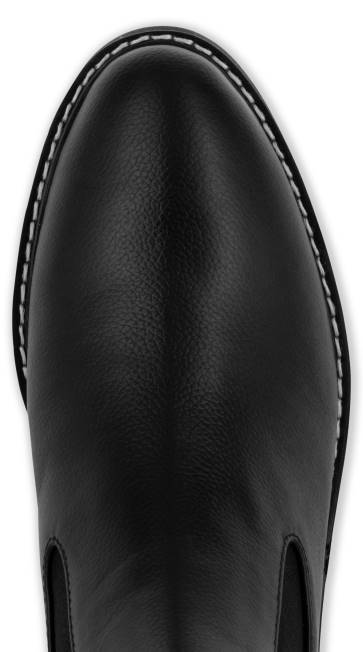 teleća čizma Od Zrnate Boje Ebanovine, S Elastičnim Bokovima, Vrhom U Obliku Badema I Jezičkom Za Povlačenje Pete.