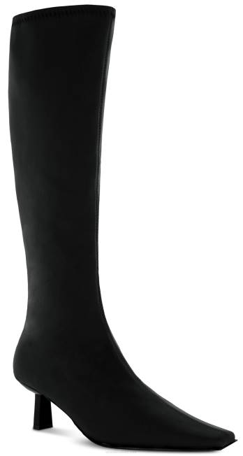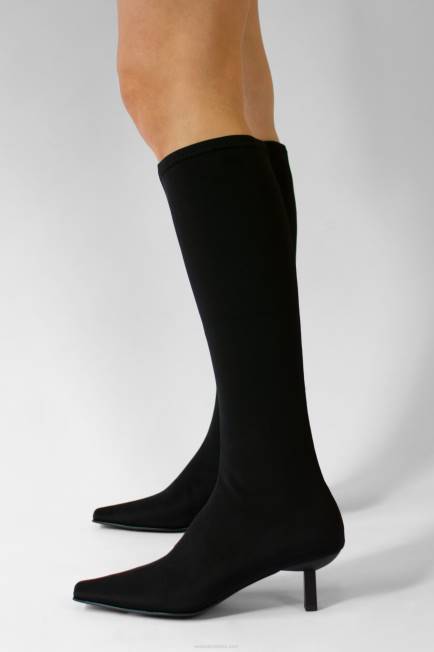 čizme Do Koljena Od Rastezljive Tkanine Ebanovine, Sa Stiletto Petom, Izgledom Poput čarape I šiljatim Vrhom.