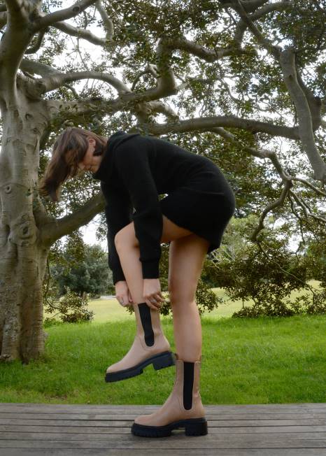 teleća čizma Boje Cimeta, S Debelim Gumenim Potplatom, Elastičnim Stranama I Zaobljenim Vrhom.