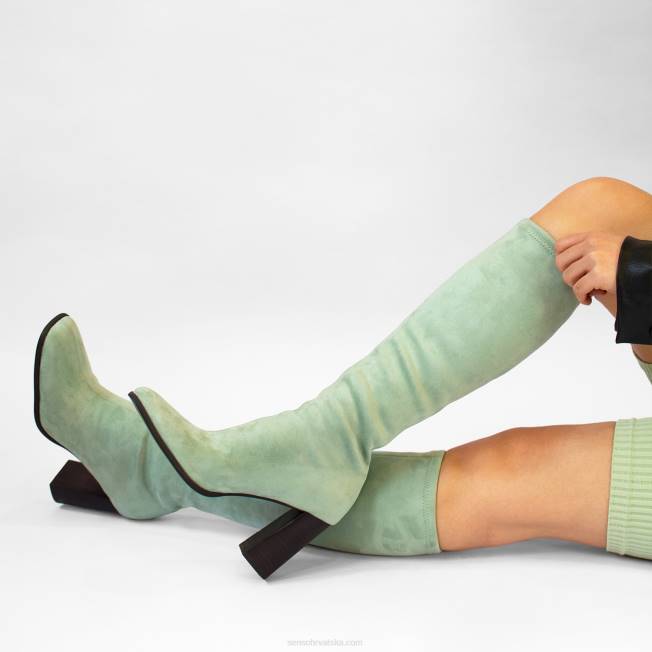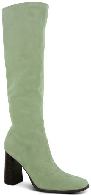 bojaste čizme Do Koljena Od Rastezljive Umjetne Antilop Kože, S Blok Visokom Potpeticom I Bočnim Patentnim Zatvaračem.