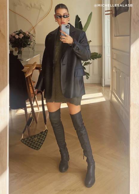 visoke čizme Od Nappa Kože Ebanovine Sa Srebrnim Detaljima I Crnim Potplatima.