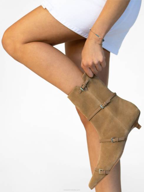 čizma Od Telećeg Antilopa U Boji Badema, S Petom I Detaljima Kopče.
