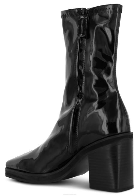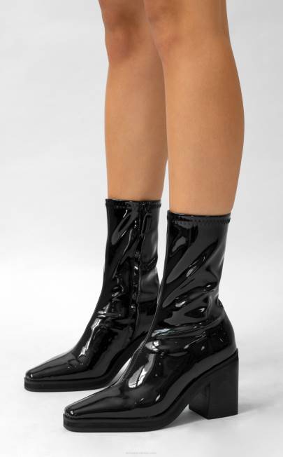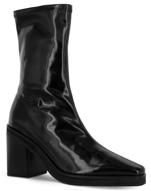čizme Od Rastezljive Umjetne Lakirane Kože Ebanovine, S Blok Petom, Vrhom U Obliku Badema I Detaljima Od Najlonskog Patentnog Zatvarača.