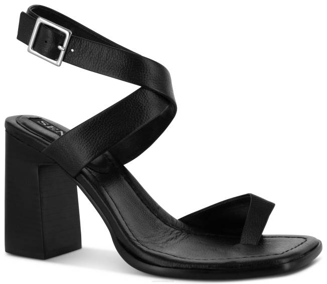 štikle Od Zrnate Teleće Kože Ebanovine S Ukrštenim Remenom Sa Srebrnim Detaljima Kopče I Remenom Za Prste Na četvrtastom Potplatu.
