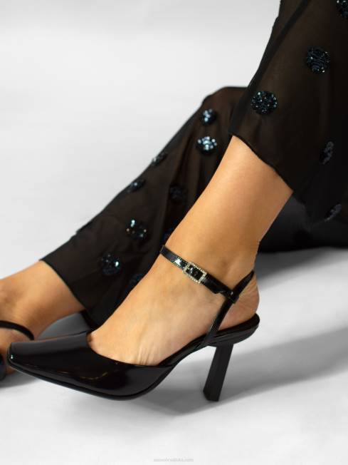 kromirana Peta Od Ebanovine, S Dizajnom Na Remenčiće S Dijamantskom Kopčom I Potplatom Od Crne Smole.