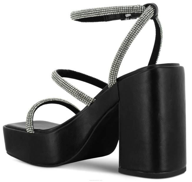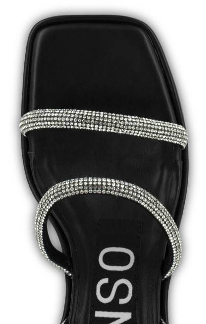 sandale S Kristalnim Remenom Od Ebanovine, S Petom S Platformom, Metalnom Kopčom I četvrtastim Vrhom.