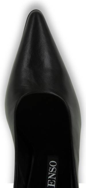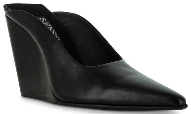 mule S Petom Od Sjajne Teleće Kože Ebanovine, Sa šiljatim Vrhom, Dizajnom Za Navlačenje I Klinastom Petom.