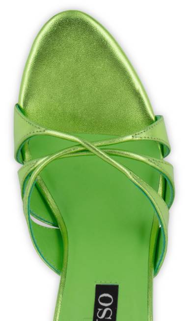 absinthe Metalik Dječje Kožne Sandale S Potpeticom S Trostrukim Remenom, Metalnim Sjajem I Vrhom U Obliku Badema.