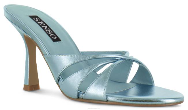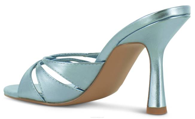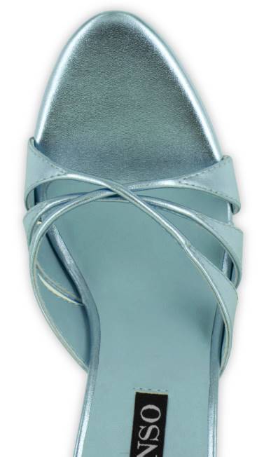 nebesko Metalik Dječje Kožne Sandale S Potpeticom S Trostrukim Remenom, Metalik Sjajem I Vrhom U Obliku Badema.