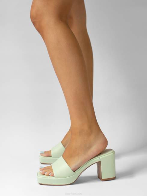mule Od Zrnaste Teleće Kože Boje Mente S Petom I Debelom Potpeticom I Debelim Prednjim Remenom.