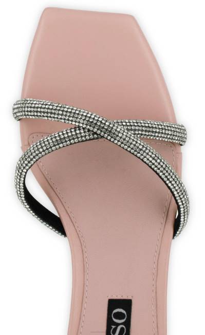 blush Mat Dječje Mule Ukrašene Kristalima S Crossover Kristalnim Remenom, Suptilnom Mačjom Petom I četvrtastim Vrhom.