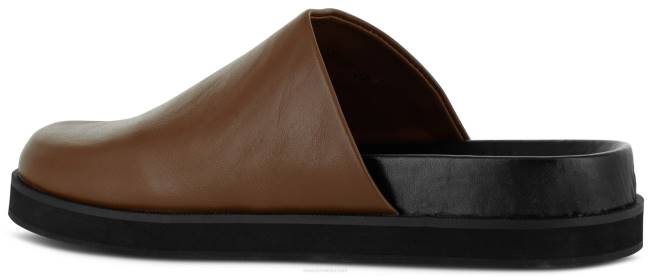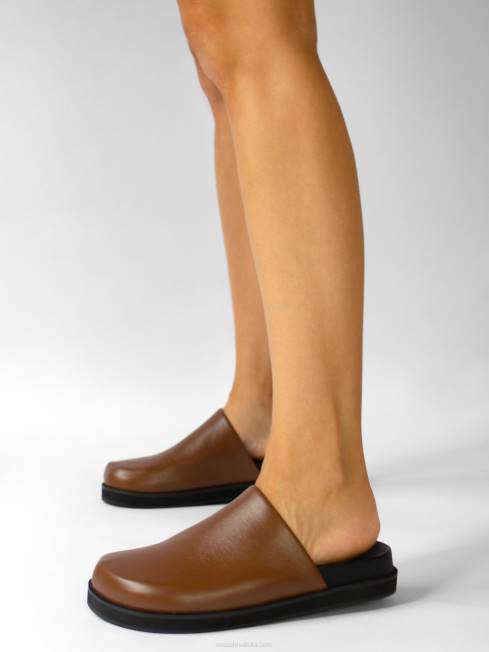 mule Od Zrnate Teleće Kože Boje Kestena S Dizajnom Za Navlačenje, Zatvorenim Prstima I Gumenim Potplatom.